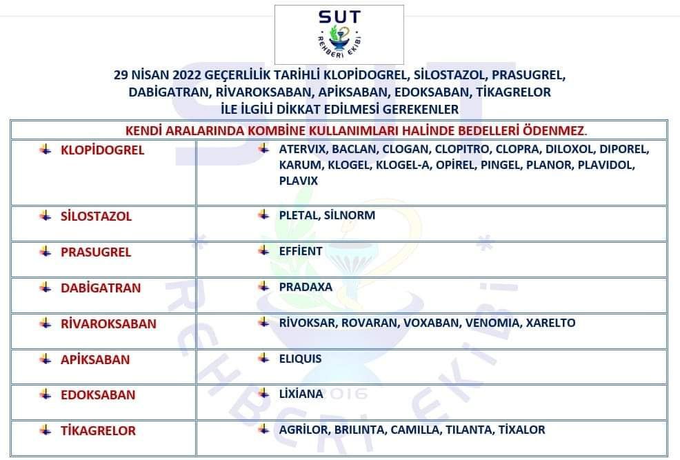 SUT Komisyonunca alınan yeni karar ile kombine veya birlikte kullanımında bedeli ödenmeyecek ilaç grubu hakkında, bilgilerinize